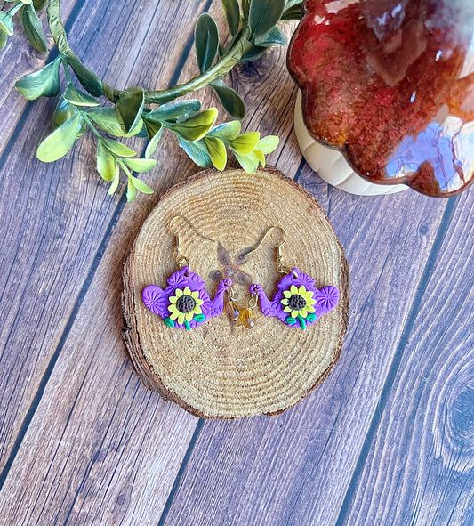Tea Pot Earrings - Purple Daisies